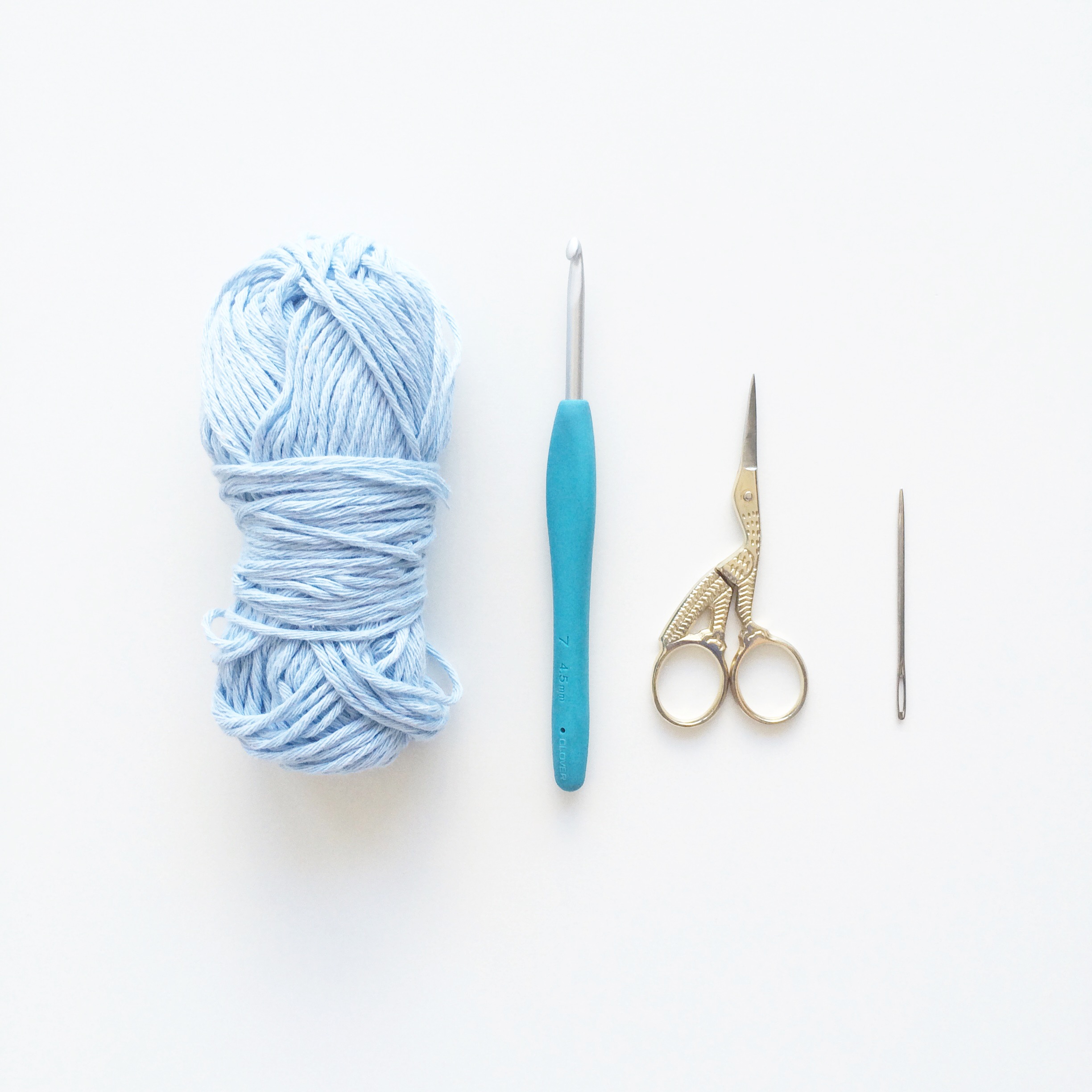Any yarn and a one hook size smaller than the recommended size. (I have used an Aran cotton yarn with a 4.5mm hook for the tutorial below)