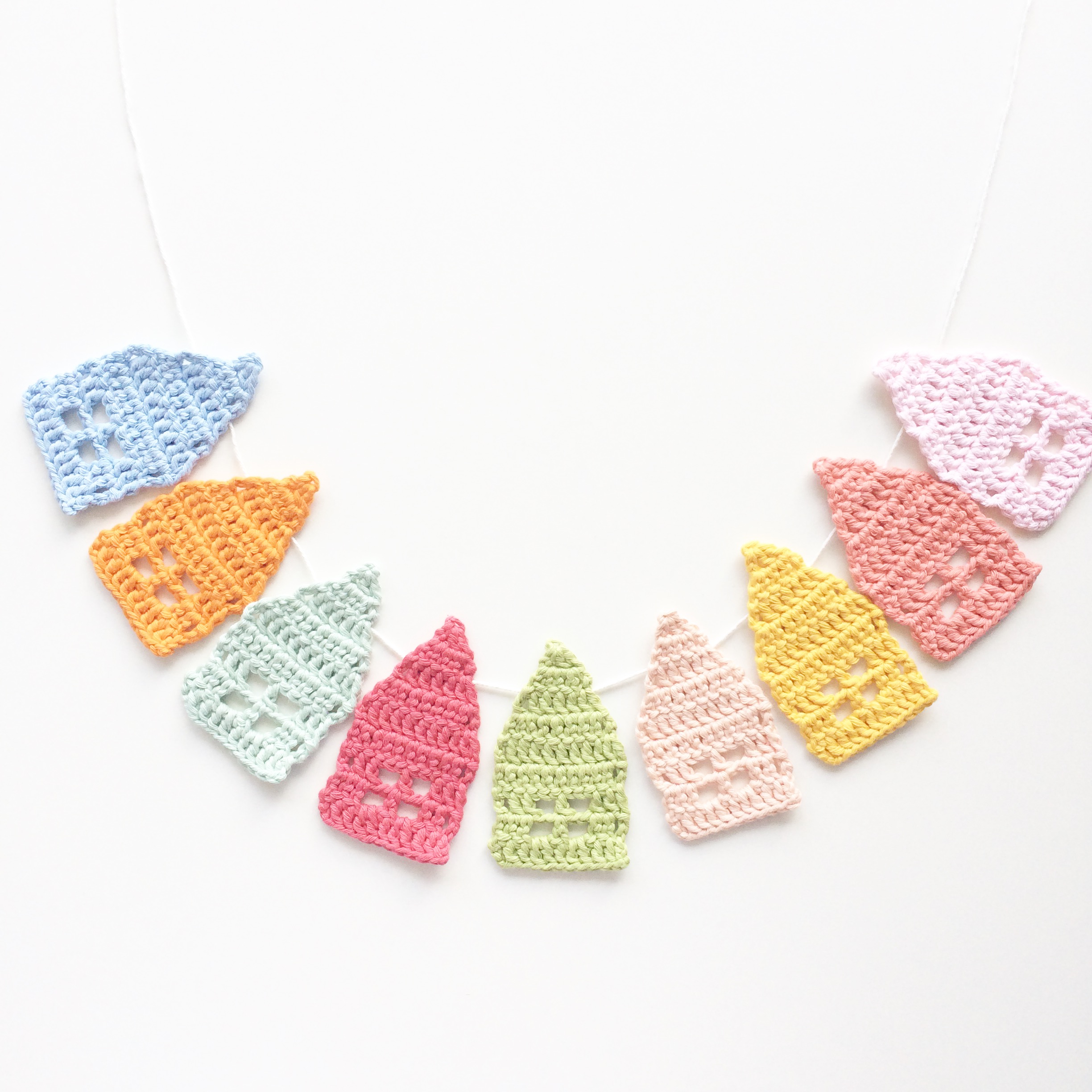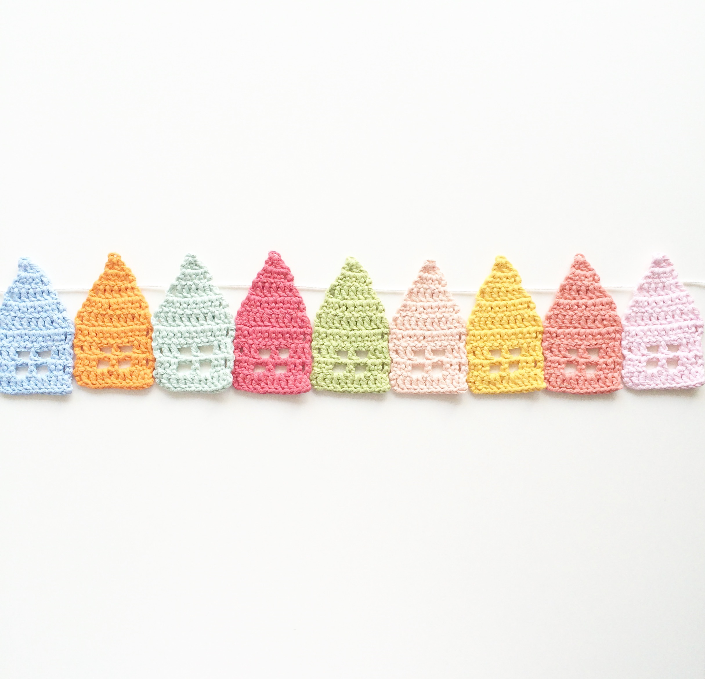 Thank you for sharing the pattern. I also loved the original picture on Pinterest but couldn’t find a pattern for them. It looked like they were made from the bottom to the roof. I like your idea of beginning with the roof first. I made a bunting using your pattern. It’s absolutely adorable! The pattern is well written and crochets up quick.